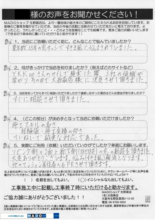 ドアリモ 玄関ドア交換・マドリモ 窓交換工事!!!(大阪市 生野区 Y様邸)