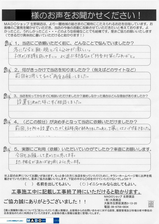 【先進的窓リノベ事業】 内窓 プラマードU取付け工事!!!(東大阪市 M様邸)